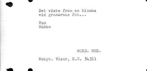 //// Det växte fram en blomma //// vid granarnas fot... //// Ht.**-*-'- - //// Vsm //// Hubbo //// NORD. MUS. //// Mskpt. Visor, E.U. 34311 ////
