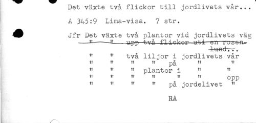 //// ueu vaxue uva uij^j. vai ... //// A 345:9 Lima-visa. 7 str. //// Jfr Det växte två plantor vid jordlivets väg //// " " två liljor i jordlivets vår //// H TT tt T! p^ TT Tt //// " " " plantor i " " //// TT TT ti TT TT TT Qpp //// H " " " på jordelivet " //// ! //// RA ////