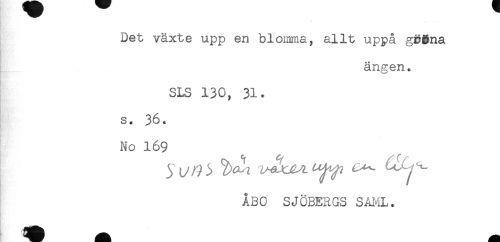 //// * ' . . //// Det växte upp en blomma, allt uppå gröna //// ängen. //// . //// SLS 130, 31. //// s. 36. //// No 169 //// j) t//? 3 ^ ^ ////
