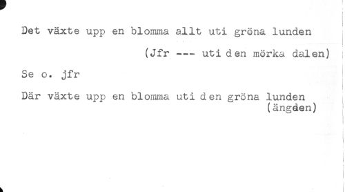 //// < //// i //// ) //// Det växte upp en blomma allt uti gröna lunden //// t //// ! //// (Jfr---- uti den mörka dalen) ; //// Se o. jfr //// Där växte upp en blomma uti den gröna lunden //// (ängden) //// ! //// ! //// t ////