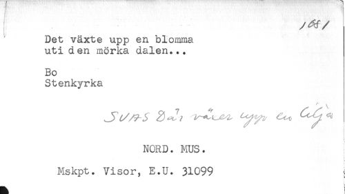 //// I y^f //// /Det växte upp en blomma //// uti den mörka dalen... //// Bo //// Stenkyrka //// r //// A //// NORD. MUS. //// < //// - //// : //// Mskpt. Visor, E.U. 31099 t ////