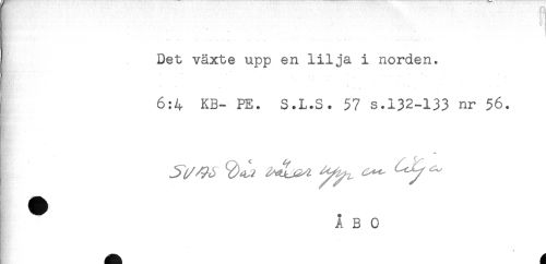 //// Det växte upp en lilja i norden. //// 4 < ^ * . //// 6:4 KB- PE. S.L.S. 57 s.132-133 nr $6. //// ^ ÅBO //// # ////