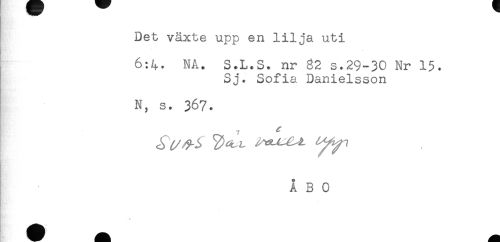 //// Det växte upp en lilja uti //// 6:4. NA. S.L.S. nr 32 s.29-30 Nr 15. //// Sj. Sofia Danielsson //// N, s. 367. //// HR. . //// <r //// ÅBO ////