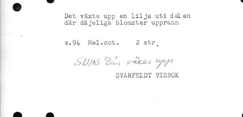 //// Det växte upp en lilja uti daLen //// där däjeliga blomster upprann //// t //// s.94 Mel.not. 2 str. //// SVANFELDT VISBOK ////