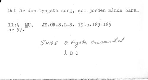 //// Det är den tyngsta sorg, som jorden månde bära. //// * //// 11:4 JE.OR.S.L.S. 19.s.133-165 //// nr 57. //// ÅBO ////
