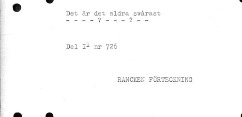 //// Det är det aldra svårast //// ** ^ *** *** ^ ^^ *** //// Del nr 726 //// . //// RANCKEN FÖRTECKNING ////