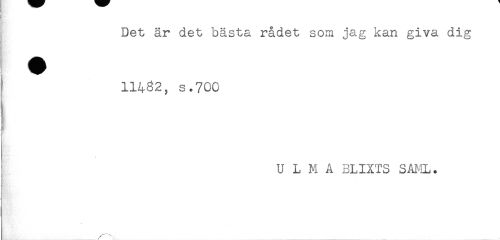 //// Det är det bästa rådet som jag kan giva dig //// [ 11432, s.700 //// U L M A BLIXTS SAML. ////