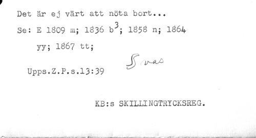 //// Det år ej värt att nöta bort... //// Se: E 1809 m; 1836 b^; 1858 n; 1864 //// yy; 1867 tt; //// J ..... //// Upps.Z.P.s.l3:39 //// KB:s SKILLINGTRYCKSREG. ////