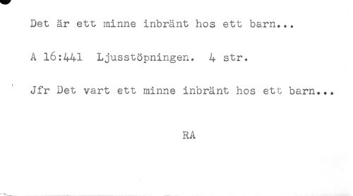 //// Det är ett minne inbränt hos ett barn... //// Å 16:441 Ljusstöpningen* 4 str. //// Jfr Det vart ett minne inbränt hos ett barn... //// RA ////