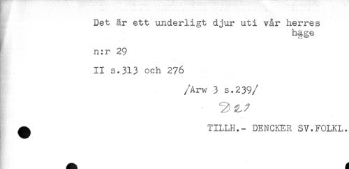 //// . . . //// Det år ett underligt djur uti vår herres //// h§ge //// * //// ^ n:r 29 //// ... ...... //// ...... ' //// II s.313 och 276 //// - * ? -- - .. . //// /Arw 3 s.239 //// /* //// ^ TILLH.- DENCKER SV.FOLKL. //// B; ////
