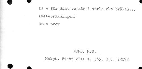 //// Dä e för dant va här i värla ska bråkas... //// (Meterräkningen) //// Utan prov //// NORD. MUS. //// Mskpt. Visor VIII.s. 365. E.U. 32072 //// ! //// ! ^^^ ////