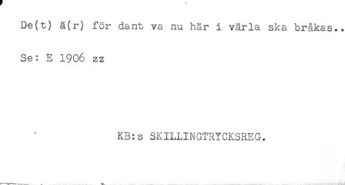 //// De(t) ä(r) för dant va nu hår i värla ska bråkas.. //// Se: E 1906 zz //// KB:s SKILLINGTRYCKSREG. ////