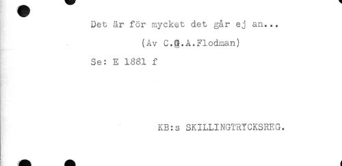 //// Det är för mycket det går ej an... //// (Av C.A.Flodman) //// Se: E 1381 f //// KB:s SKILLINGTRYCKSREG. ////