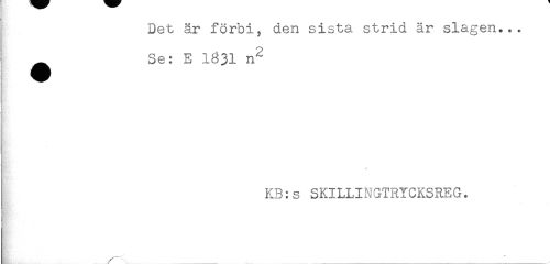 //// Det år förbi, den sista strid är slagen... //// ! ^ Se: E 1831 n^ //// t //// KB:s SKILLINGTRYCKSREG. //// $ //// T //// ^BM. ////