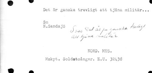 //// Det är ganska trevligt att tjäna militär... //// Sm //// N.Sandsjö r , ^ " //// MORD. MUS. //// Mskpt. Soldatsånger. E.U. 3243S ////