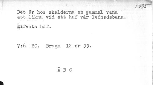 //// i ' - //// /; Det är hos skalderna en gammal vana //// att likna vid ett haf vår lefnadsbana. //// - . .. K —- .J - . //// --- //// Bifvets haf. //// 7:6 BO. Brage 12 nr 33. ////