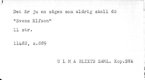 //// Det är ju en sägen som aldrig skall dö //// "Svens Elfson" //// 11 str. //// i //// 11482, s.839 //// U L M A BLIXTS SAML. Kop.SVA ^ //// ) //// j //// § //// F //// < //// B ////