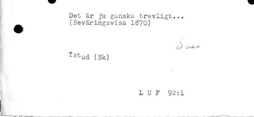 //// Det är ju ganska trevligt.** //// (Beväringsvisa lg?0) //// j ^st^d (Sk) //// M * //// < //// ! //// t //// L U F 92:1 //// 'L. ////