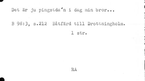 //// Det är ju pingstda^n i dag min bror*** ! //// H //// B 96:3, s.212 Båtfärd till Drottningholm. //// a //// 1 str. ' //// ' //// i //// F //// RA //// } ////
