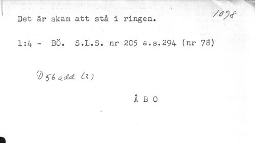 //// Det är skam att stå i ringen. //// 1:4 - BÖ. S.L.S. nr 205 a.s.294 (nr 73) //// ÅBO ////