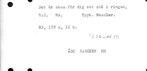 //// * Det är skam för dig att stå i ringen, //// 6:2. MA. Uppt. Nessler. //// i. //// . //// R5, 173 a, 12 b. //// ÅBO RANCKEN MS ////