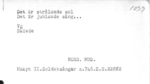 //// t . 5 //// Det år strålande sol //// Det är jublande sång... //// i //// Vg //// Skövde //// ! //// NORD. MUS. ; //// Mskpt Il.Soldatsångér s.746.E.U.22S82 ////
