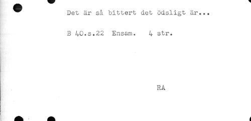 //// ^ Det är så bittert det ödsligt är... //// B 40.S.22 Ensam. 4 str. //// RA ////