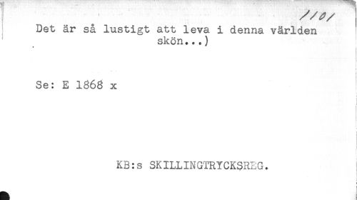 //// Det är så lustigt att leva i denna världen //// skön...) ' //// * //// i //// t //// i //// t //// ! //// Se: E 1S68 x //// ! //// < //// i //// ! //// KB:s SKILLINGTRYCKSREG. //// //// /t //// r //// < ////