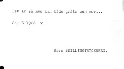//// Det är så man kan både gråta och mer... ; //// t //// t //// Se: E 1903 x //// i //// } //// i //// I //// i //// KB:s SKILLINGTRYCKSREG. ////