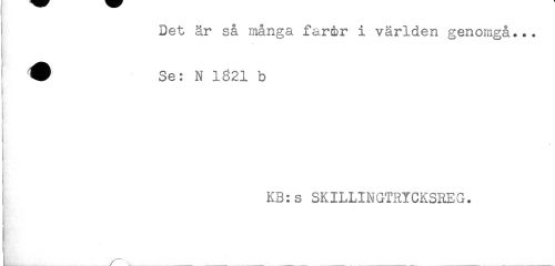 //// Det är så många farÉr i världen genomgå... //// # Se: N 1821 b //// i //// KB:s SKILLINGTRYCKSREG. ////