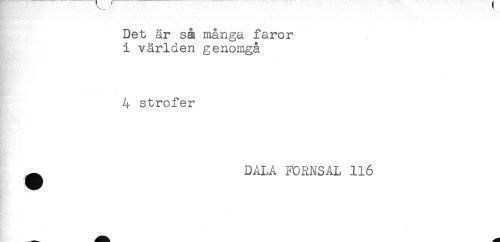 //// Det är så många faror //// i världen genomgå //// 4 strofer //// ^ DALA FORNSAL 116 ////