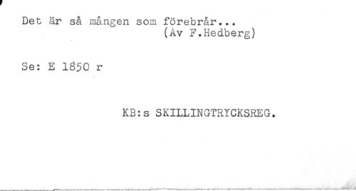 //// Det är så mången som förebrår... //// (Av F.Hedberg) //// Se: E 1850 r //// KB:s SKILLINGTRYCKSREG. ////
