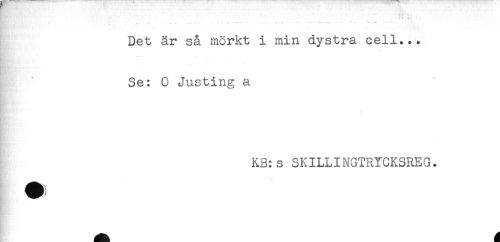 //// ' *,*'* //// . : . - - . //// ... //// Det är så mörkt i min dystra cell... //// Se: O Justing a //// KB:s SKILLINGTRYCKSREG. ////