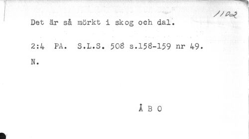 //// I - - ^ ' y/^ //// Det är så mörkt i skog och dal. //// - //// 2:4 PA. S.L.S. 508 s.158-159 nr 49. //// ? //// N. //// ) //// i //// t //// ! //// t ////