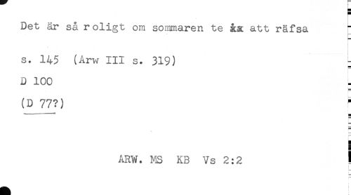 //// Det är så roligt om sommaren te åa att räfsa " //// s. 145 (Arw III s. 319) : //// ! //// D 100 //// (D 77?) //// ** //// H //// S //// ARW. m KB Vs 2:2 ! ////