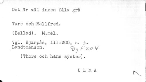 //// Det är väl ingen fåla grå //// Ture och Mallfred. //// (Ballad). M.mel. //// < //// ^ i //// . t //// t //// Vgl. Hjärpås, 111:200, s. 5. //// Landtmanson. /r j ^ //// (Thore och hans syster). //// t //// f //// _ //// U L M A ^ { //// i //// F ////