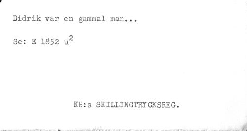 //// Didrik var en gammal man... //// Se: E 1352 u^ //// KB:s SKILLINGTRYCKSREG. //// ___...... ^ ^ ////