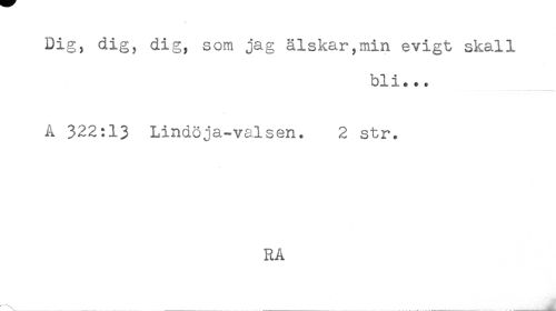 //// Dig, dig, dig, som jag älskar,min evigt skall //// bli... //// A 322:13 Lindoja-valsen. 2 str. //// RA ////