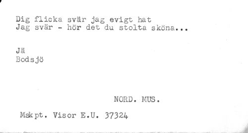//// Dig flicka svär jag evigt hat //// Jag svär - hör det du stolta sköna... //// Jä //// Bodsjö //// NORD. MUS. //// Mskpt. Visor E.U. 37324 ////
