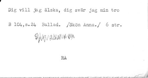//// Dig vill jag älska, dig svär jag min tro //// B 104,s.24 Ballad, /Skön Anna./ 6 str. //// ! //// RA //// * ////