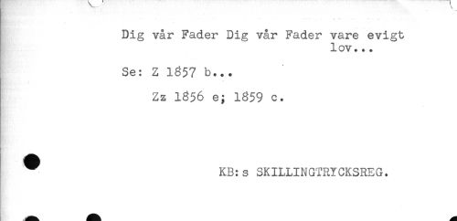 //// Dig vår Fader Dig vår Fader vare evigt //// lov... //// Se: Z 1857 b... //// Zz 1856 e; 1859 c. //// ^ KB:s SKILLINGTRYCKSREG. ////