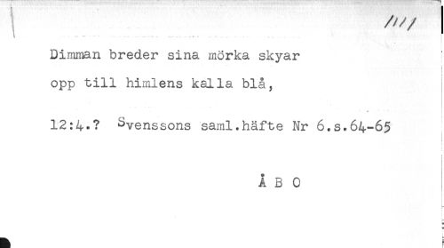 //// t ' ** ** " " - . - - — — - .. - ** _ ^ - - . *' .-. //// Dimman breder sina mörka skyar ^ //// i //// < //// opp till himlens kalla blå, //// << //// 12Svenssons saml.häfte Nr 6.s.64-65 //// < //// i //// ÅBO //// t //// i //// - ////