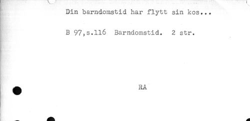 //// Din barndomstid har flytt sin kos... //// B 97,s.116 Barndomstid. 2 str. ////