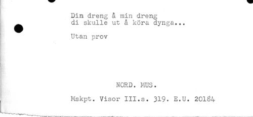 //// Din dreng å min dreng //// ^ di skulle ut å köra dynga... //// Utan prov //// NORD. MUS. //// Mskpt. Visor III.s. 319. E.U. 20164 ////