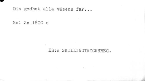 //// Din godhet alla väsens far... //// * //// Se: Zz 1800 e //// KB:s SKILLINGTRYCKSREG. //// * //// ....... ...... _....... ////