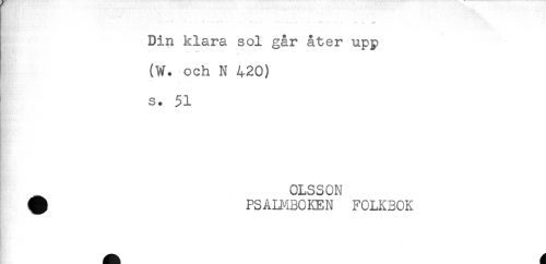 //// .... . . . //// Din klara sol går åter upp //// (W. och N 420) //// s. 51 //// [ //// * //// OLSSON //// ^ PSALMBOKEN FOLKBOK ////
