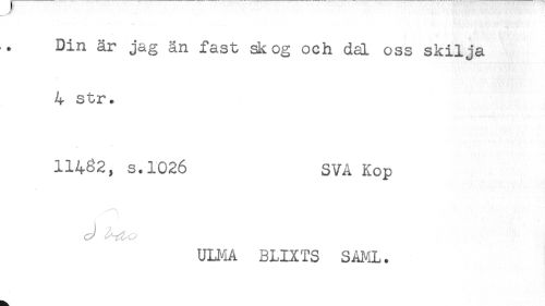 //// Din är jag än fast sk og och däL oss skilja //// 4 str. //// 11482, s.1026 SVA Kop //// ULMA BLIXTS SAML. ////