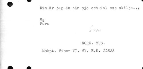 //// Vg //// Fors //// NORD. MUS. //// Mskpt. Visor VI. Si. E.U. 22828 ////