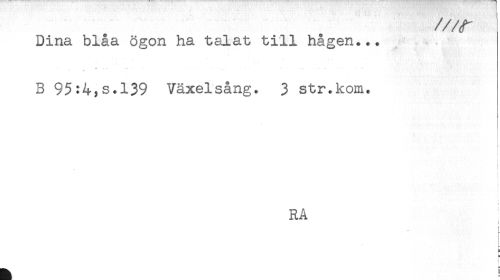//// Dina blåa ögon ha talat till hågen... //// B 95:4^s.l39 Växelsång. 3 str.kom. //// } //// i //// RÅ //// i //// ^ //// I ////