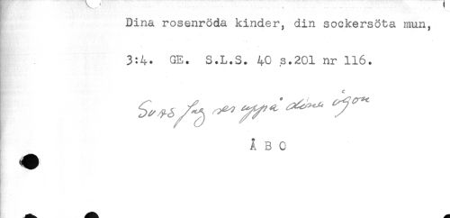 //// Dina rosenröda kinder, din sockersöta mun, //// 3:4. GE. S.L.S. 40 s.201 nr 116. //// * //// ABC ////